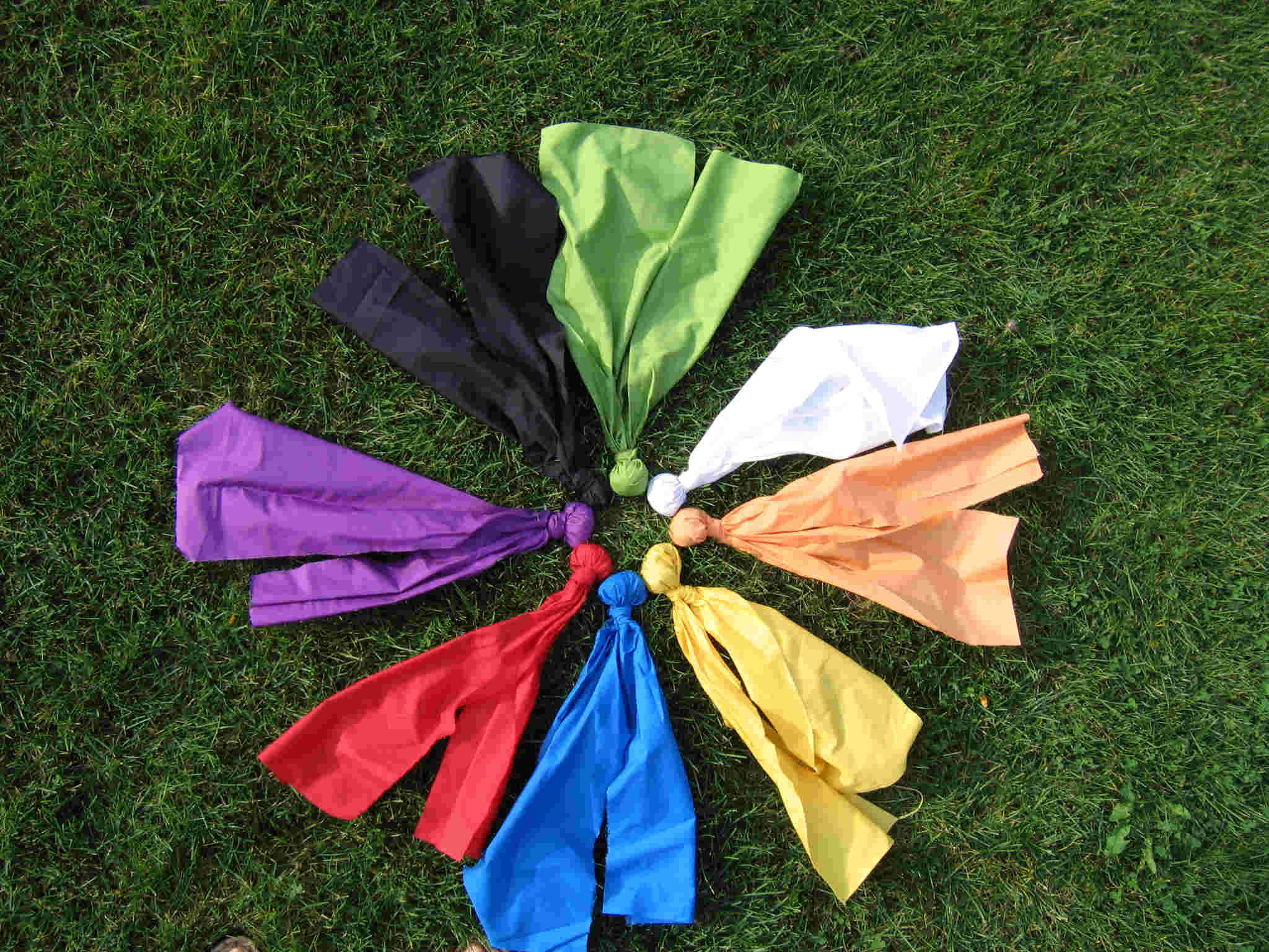 1. Coloured cotton cloth cut in long, about 8 inch (20 cm) strips. (yellow, red, black, white, blue, purple, green, peach.)